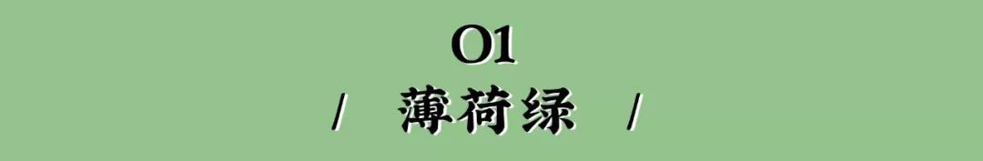 没有草木绿那么明亮,比墨绿更淡然,薄荷绿成为新趋势的首选。拥有天生的“空气感”,自带清凉属性的绿色,最适合炎日燥热的夏天,和大自然紧密相连,清新、平和,永远充满氧气与生机。