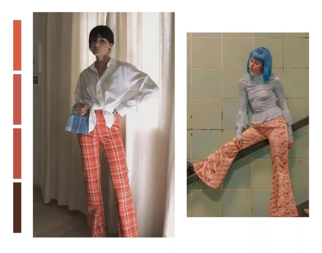 想要勇敢踏出第一步,又不想踩雷的朋友,可以在下身选择蜜瓜橙这样的色系,远离面部,就没什么好怕的了。