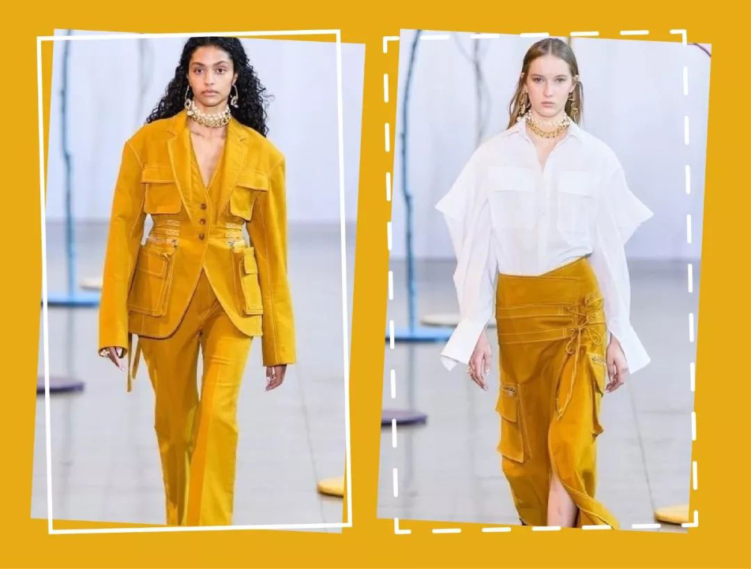 或者选择百搭的黑白灰,几乎可以配一切。不只是古金黄,凡是类似这样明亮的颜色,都要选择有设计细节的,不要光秃秃的一整个穿在身上,或版型、或材质,尽量选择有设计感的,另外,不知道配什么颜色,就用最基础的颜色搭是永远不会出错的。